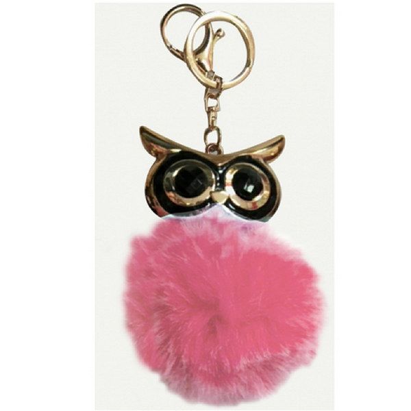 Брелок пушистый комбинированный Сова на цепочке с карабином удобно присоединять к рюкзаку, сумке, одежде, ключам.