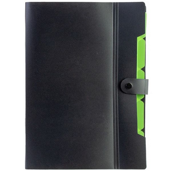 Папка пластиковая А-4 6 отд. на кнопке Optima черная, разделители салатовые