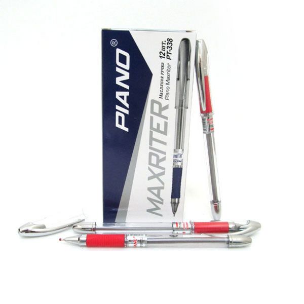 Ручка масляная Piano Maxriter резиновый грип, прозрачный корпус, красная. Стержень 138мм.