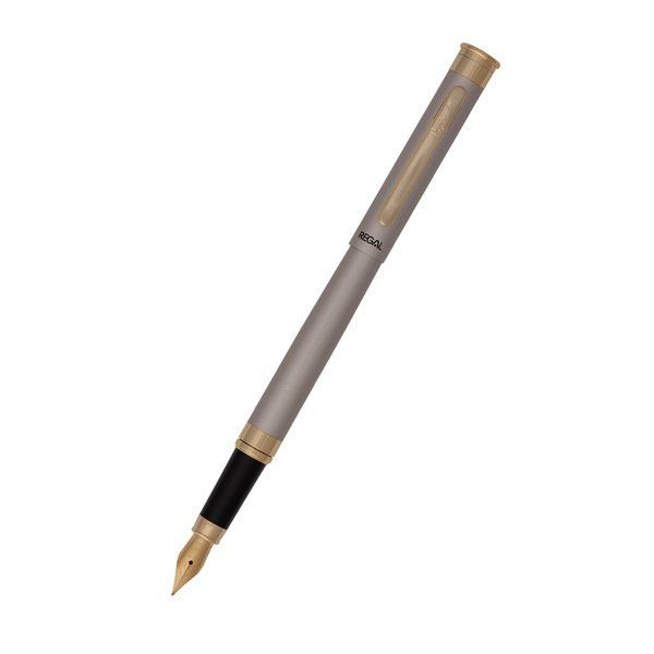 Ручка перьевая Regal серая з золотистым в бархатном чехле
