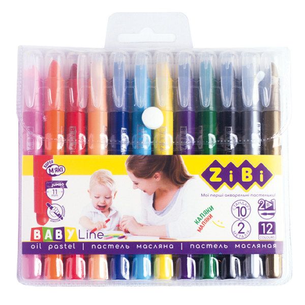 Пастель масляная 12шт шелковая, акварельный эффект, пластиковый корпус ZiBi BABY Line