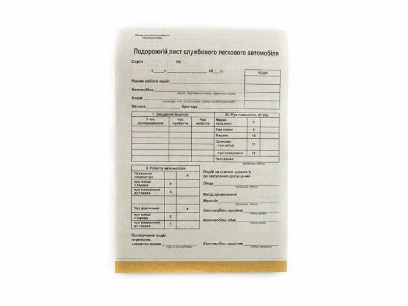 Путевой лист легкового автомобиля, формат А-5, бумага газетная клеточка, 100 л