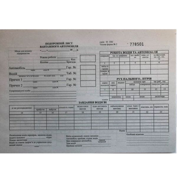 Путевой лист грузового авто, формат А-4, бумага офсетная номерной, 100 л