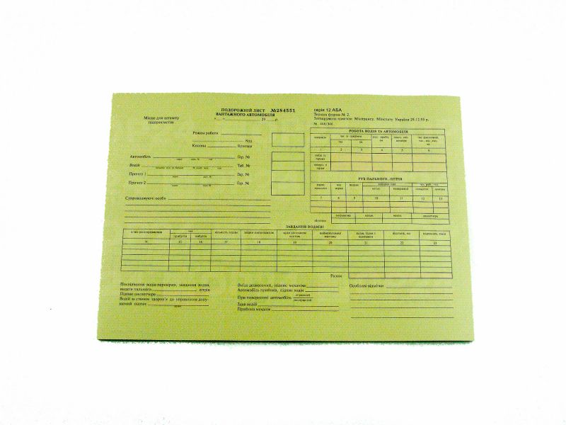 Путевой лист грузового автомобиля, форма № 2, количество листов 50 штук.