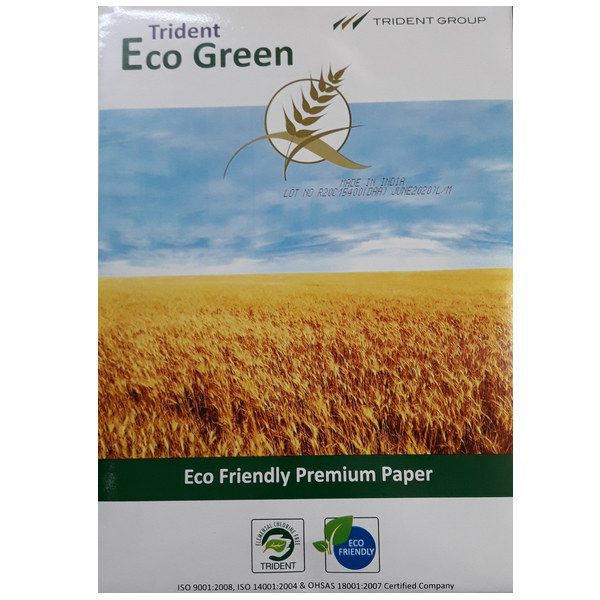 Trident ECO GREEN- офисная бумага формат А-4 для ежедневного использования, предназначена для принтеров, копиров, как для двусторонней так и односторонней печати. Белизна 150 CIO, толщина 101 мкн, непрозрачность 92%. Производитель- JK Paper Ltd, Индия.